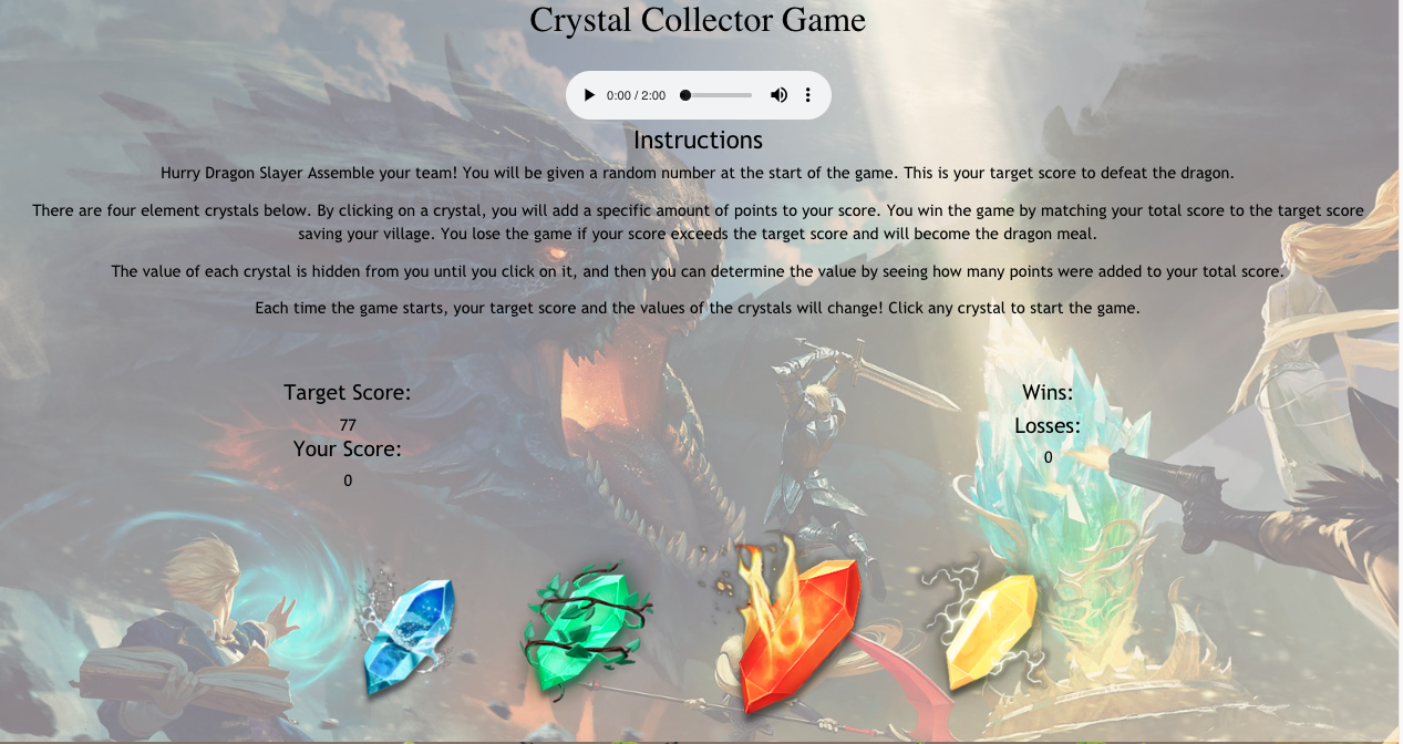 In this game, the player will guess the random gem that will defeat the dragon. The gems are generated by a number system which will count the points to reach a specific number to win the game.