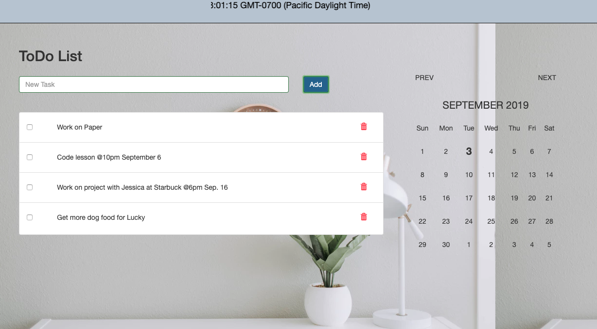 I wanted to create a todo list that would allow the user to add or delete task they created.They can check mark when they are done or delete the whole list. Also allowing the user to use the calendar to see the dates to be more organized. Theme: Minimalism Office setting.